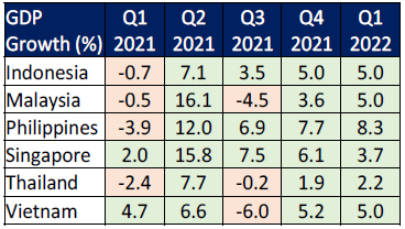 May has arrived and the war continues to rage on, relentlessly. Lives continue to be lost. Markets are in turmoil with commodity price volatility. May is also the month that ASEAN-6 countries (Indonesia, Malaysia, Philippines, Singapore, Thailand and Vietnam) release their Q1 2022 macroeconomics results.