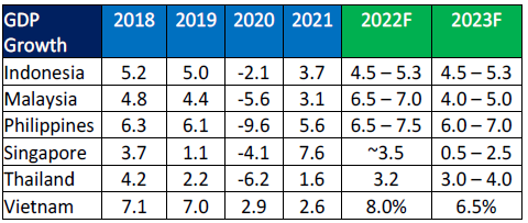 All ASEAN-6 countries are also forecasting further economic expansion in 2023 as shown in the table below.