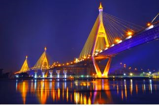 Also known as Bhumibol Bridge, the bridge measures 13 km. The bridge connects the Chao Phraya River with two striking cables-stayed to support the outer edges of the decks.6 The bridge aims to transport goods from Bangkok Port to industrial areas to ease the traffic in the area.7