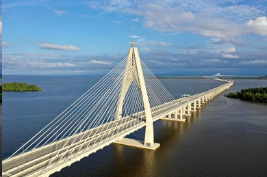 This is the second longest bridge in Southeast Asia which measures 24 km. The design consists of cable stayed and box girder bridge.3 The bridge has held an annual marathon event, making it the longest bridge marathon in the world.4