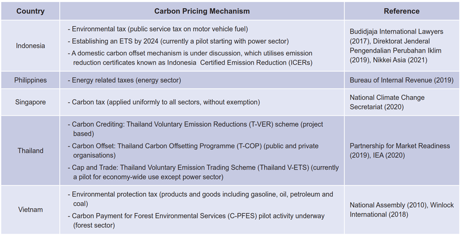 Figure 2: Carbon Pricing in ASEAN (ASEAN [2021])