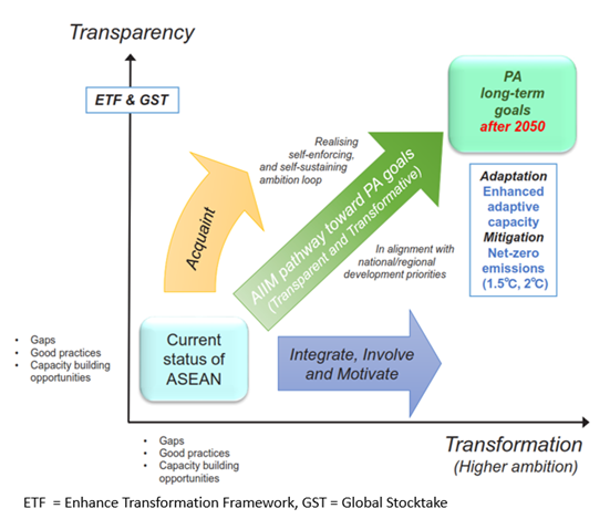 Figure 1. ASEAN climate vision toward 2050, showing the AIIM pathway to achieve the Paris Agreement goals of adaptation and mitigation. ASEAN [2021].
