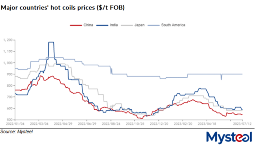 For June alone, however, steel exports declined both on-month and on-year, with the tonnage reaching 7.51 million tonnes, lower by 10% from May and by a tiny 0.6% from June 2022, the Customs data showed.