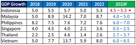 ASEAN-6 governments continue to be optimistic about achieving economic growth in 2023, amid slowing economic growth due to high interest rates. Tight financial conditions, weakening demand, together with escalating geopolitical tensions, high interest rates will continue to weigh heavily on ASEAN economies.