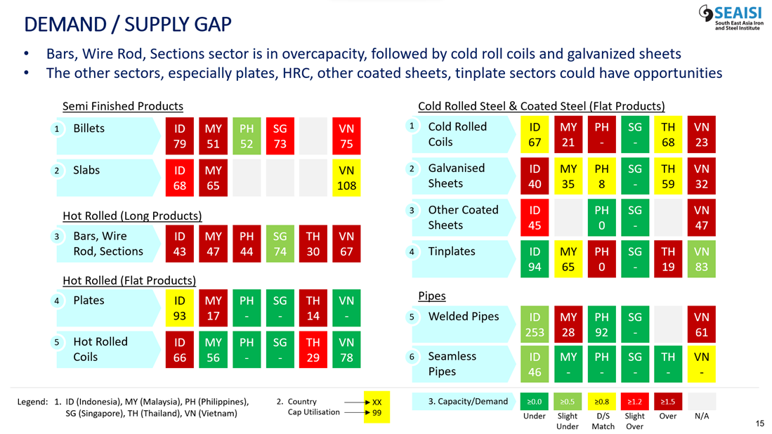 FIGURE 1: HEATMAP OF DEMAND / SUPPLY GAPS IN THE ASEAN STEEL SECTORS