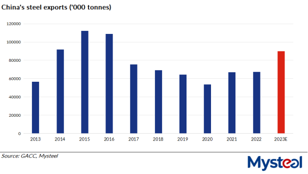 China's steel exports are expected to remain at a relatively high level next year as scope still exists for global steel demand to grow in 2024, Mysteel's latest report predicts. But whether the country's steel exports also rise next year it's too soon to tell.