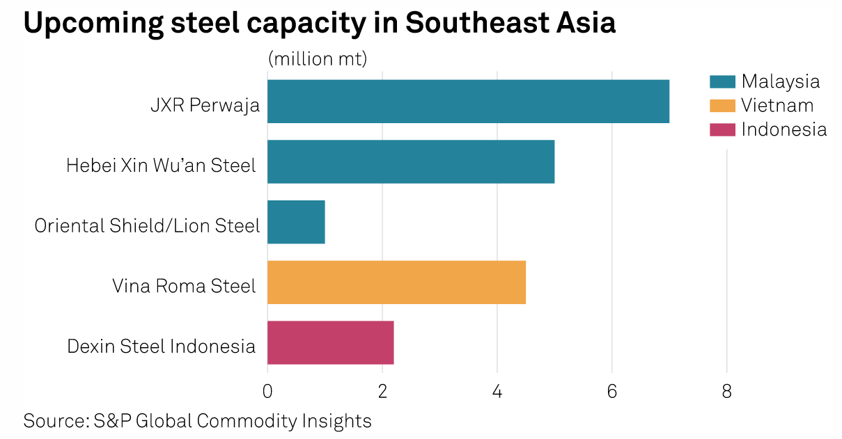 Indonesia and Malaysia are seeing two new blast furnaces ramped up to full capacity in 2024 with a total of annual supply of 4 million mt of HRC.