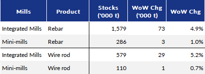 Table 5: Mills' Rebar and Wire Rod Stocks by Region by Jan 24