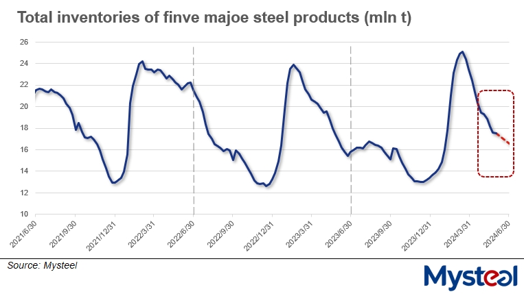 "The slowdown in the destocking of steel inventories will be considered by many market participants as bearish for the industry, which will exert heavier pressure on steel prices," Wang added.