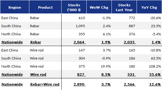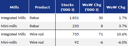 Table 5: Mills' Rebar and Wire Rod Stocks by Region by Jun 26