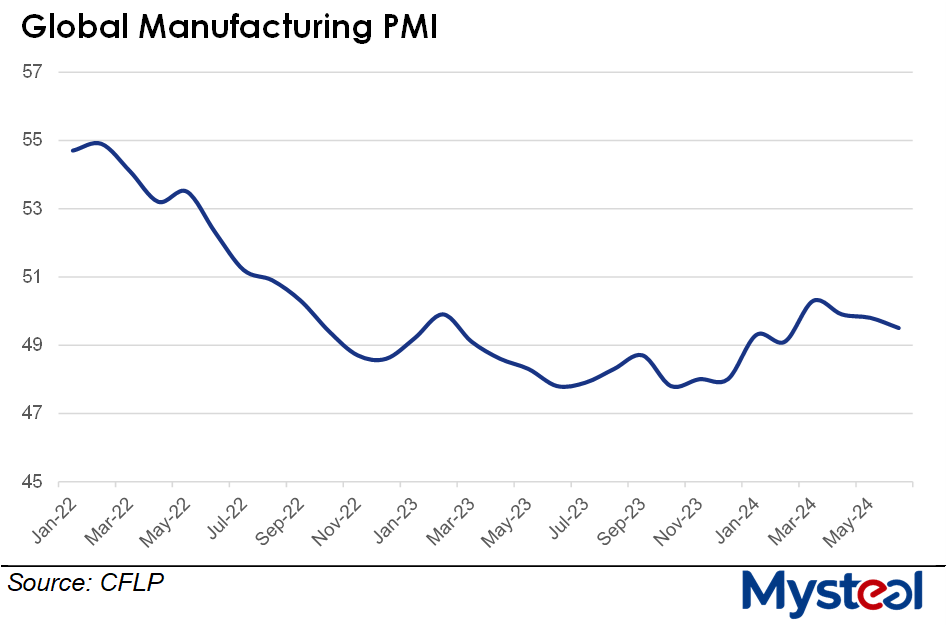 The global manufacturing Purchasing Managers' Index (PMI) dipped in June to reach 49.5, staying the contraction zone for the third month and down another 0.3 point on month, according to the latest release of the China Federation of Logistics & Purchasing (CFLP) on July 6.