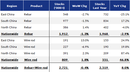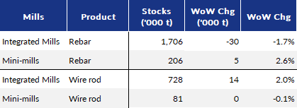 Table 5: Mills' Rebar and Wire Rod Stocks by Region by Jul 31