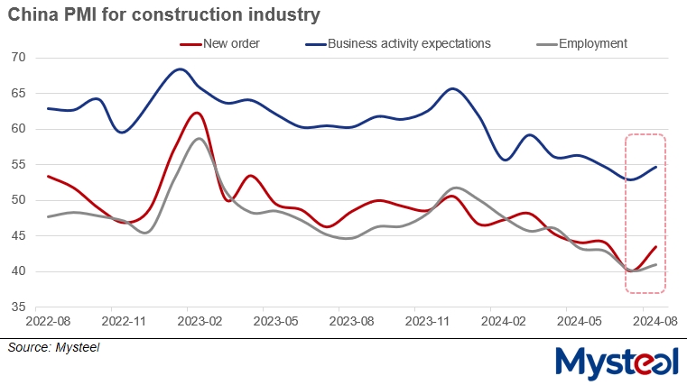 For example, under the recently released Purchasing Managers' Index (PMI) for China's construction industry, the indicators for new orders, business activity expectations, and employment all increased on month in August. This suggests that building contractors will expedite their work this month, and their consumption of construction steel will rise in tandem, according to Wang.