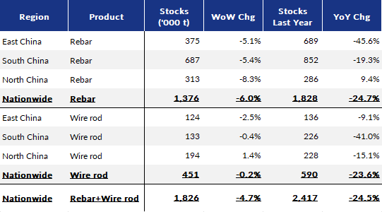 Table 5: Mills' Rebar and Wire Rod Stocks by Region by Sept 11