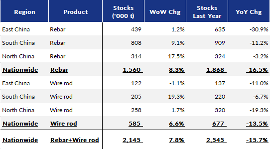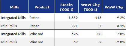 Table 5: Mills' Rebar and Wire Rod Stocks by Region by Oct 24