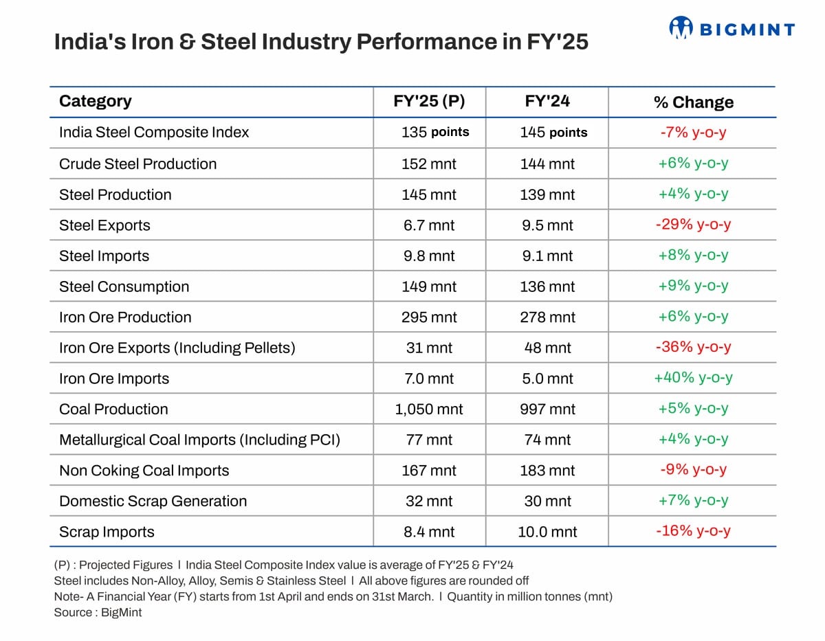 This is expected to give a fillip to higher domestic capacity utilisation, especially by the primary steel producers, amid expanding steelmaking capacity. BigMint projects India's crude steel production to reach around 165 mnt in CY'25, with consumption edging up to 152 mnt.