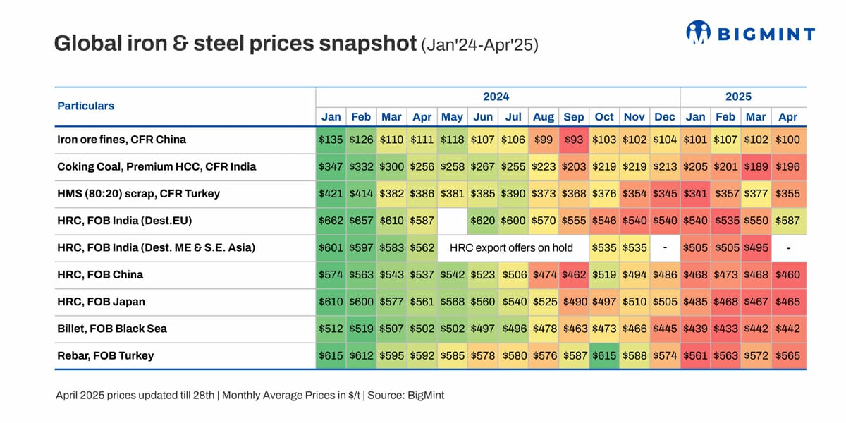 Morning Brief: Global steel and raw material prices showed a mixed trend m-o-m in April 2025, reveals BigMint data.