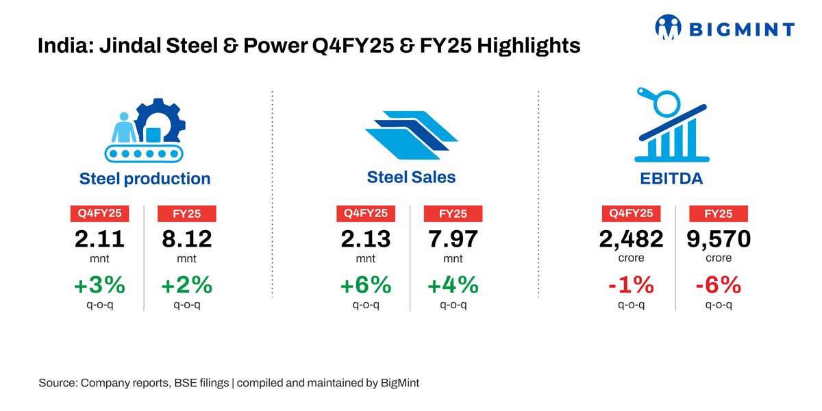 Jindal Steel & Power (JSP) has posted its highest ever steel production and sales in FY'25 supported by record performance achieved by multiple mills.