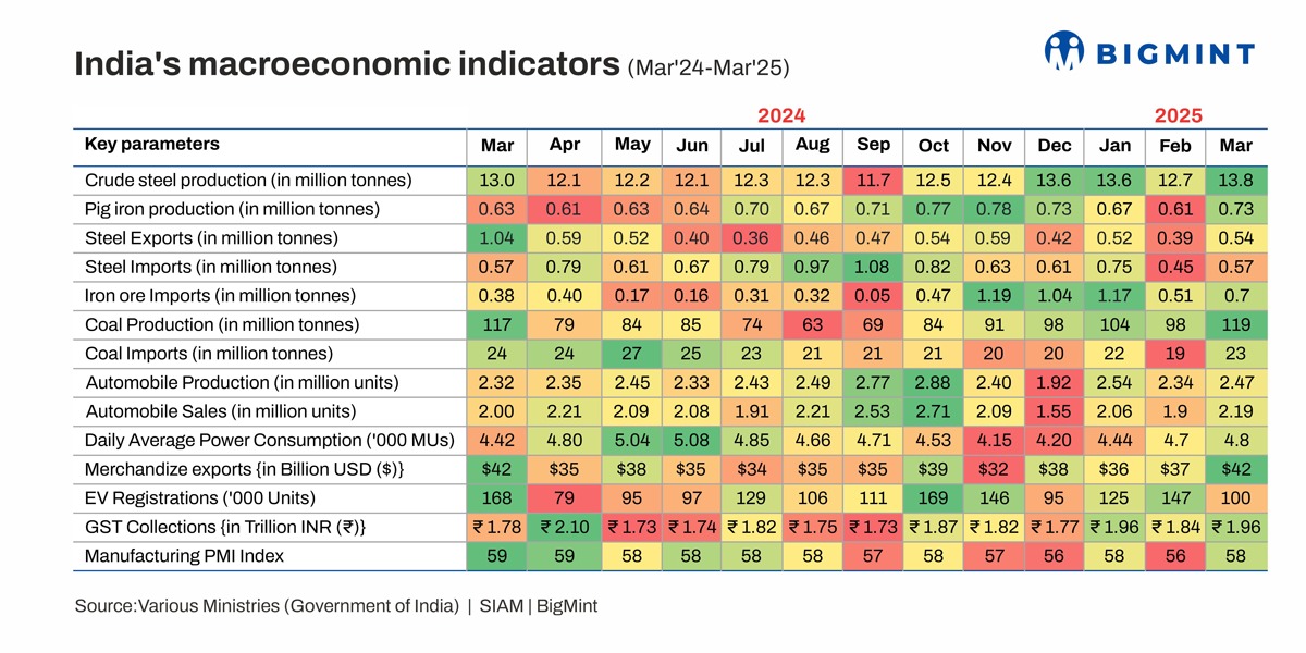 Morning Brief: India's steel industry staged a recovery in March compared to the downtrend in February, with relevant macroeconomic indicators showing an improvement m-o-m.