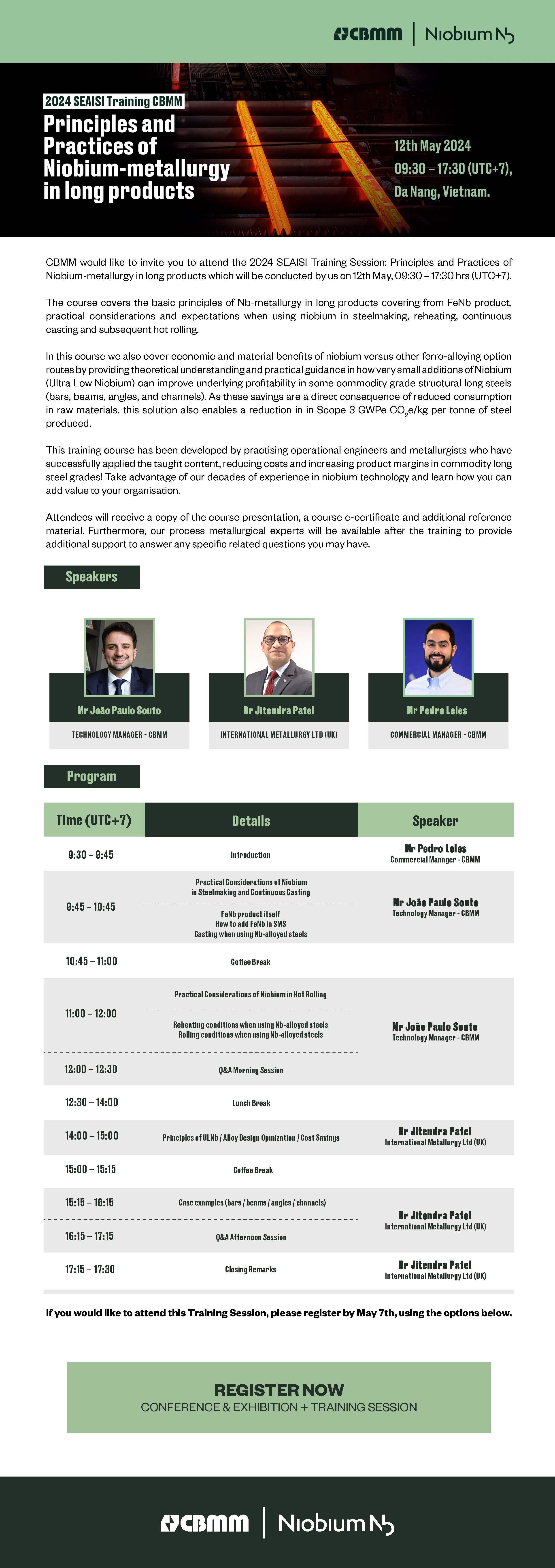 Dr. Jitendra Patel | Supporting the Transition to a Low-Carbon Economy with Low-Emission Ferro-Niobium (FeNb) Alloy and Application of Nb-Higher Strength Structural Steels | - | CBMM Technology Suisse SA, UK |
