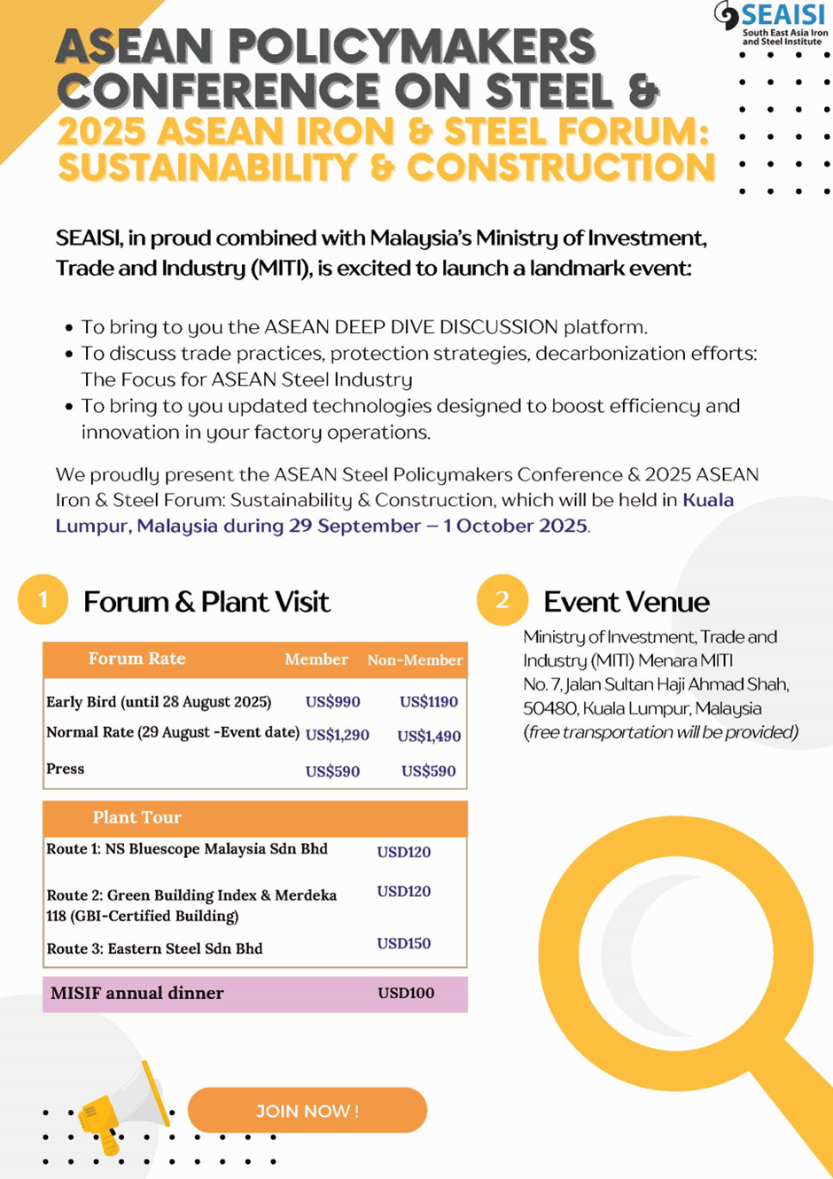 ASEAN Policymaker Conference on Steel & 2025 ASEAN Iron & Steel Forum: Sustainability & Construction (1 October 2025)